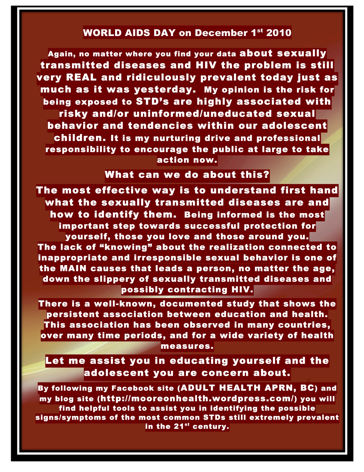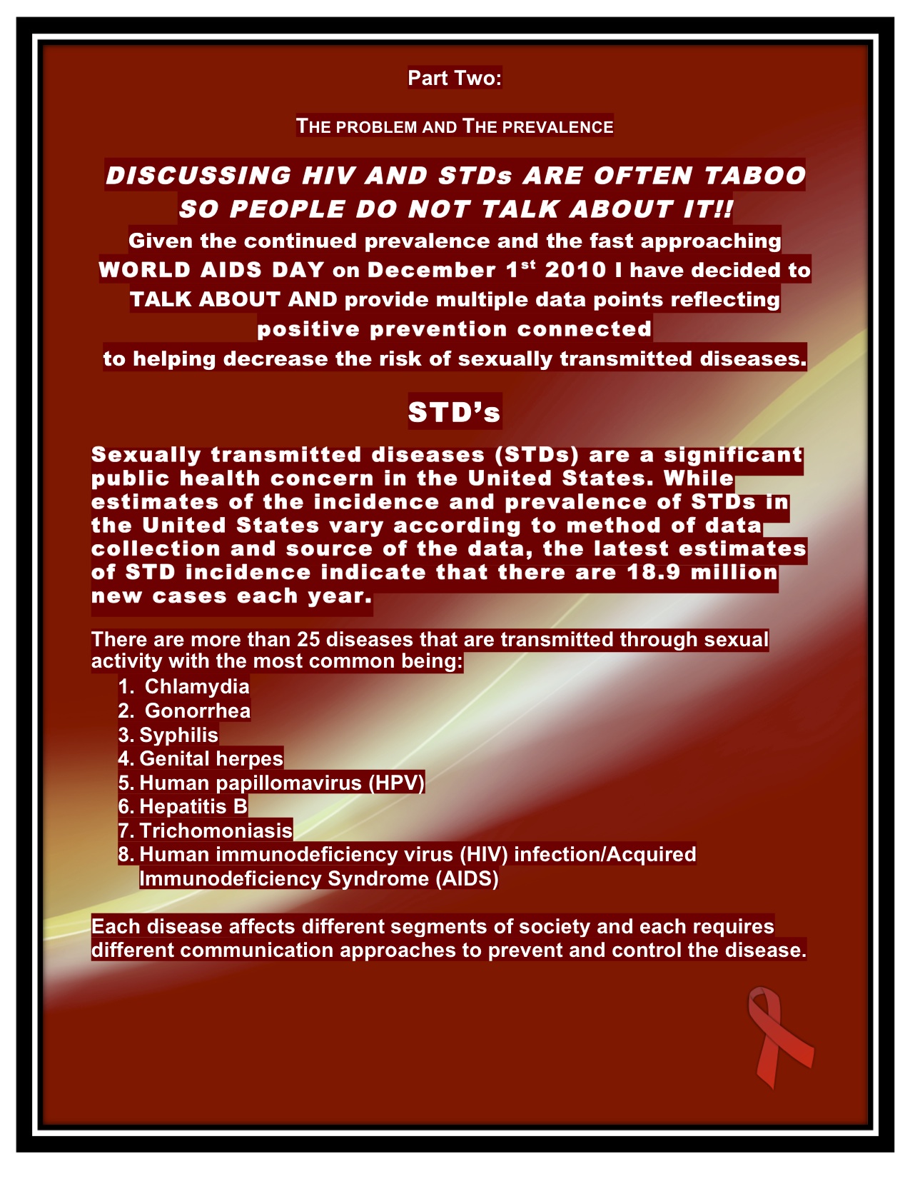 THIS IS THE THIRD PART OF MY STD PREVENTION AWARENESS CAMPAIGN. THE TITLE OF MY CAMPAIGN IS CALLED: